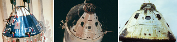 Еще одно чудо было показано американцами в своем «космосе». Это изменение внешнего вида «Командного Модуля». У американских аппаратов менялся цвет поверхности и детали модуля.
