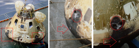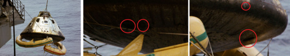 Белые кружочки появлялись на одном и том же месте, на поверхности «командного модуля». Они появлялись именно после приводнения, и прекрасно сохранялись после того, как с поверхности этой капсулы удалялось покрытие. Значит ее появление не случайный фактор.