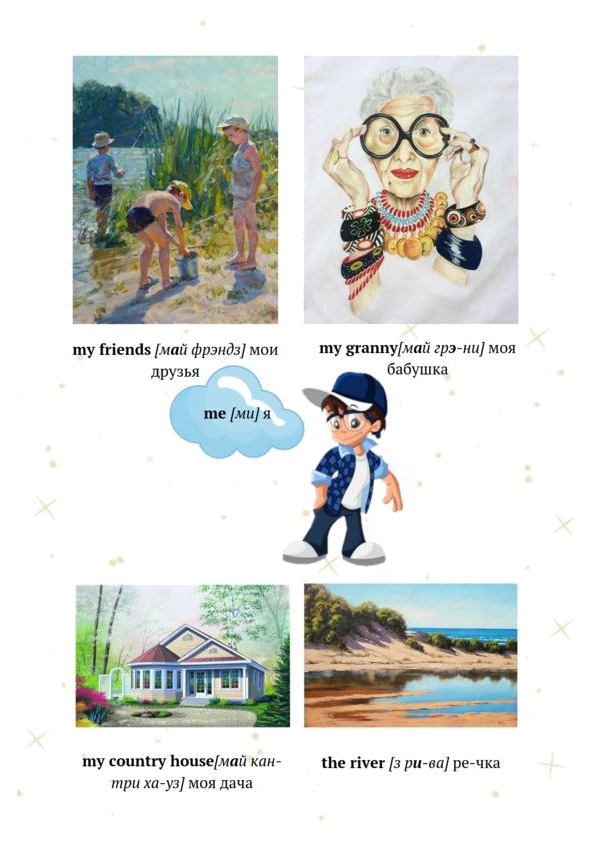 Моя (my) [май] бабушка (granny) [грэни] и (and) [энд] я (I) [ай] ездим (go) [гоу] на (to) [ту] речку (the river) [з рива] несколько (several) [сэвэрал] раз (times) [таймз] в неделю (a week) [э уик].