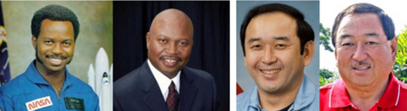 Слева, Роналд Эрвин Макнейр, далее он же, представляется братом близнецом. Справа, Эллисон Сёдзи Онидзука, далее, якобы, его брат близнец. Эти персонажи, согласно публикации изменили только имена: «Двое других живых астронавтов, не такие смелые, как их вышеупомянутые коллеги, выдают себя за братьев близнецов. Довольно неожиданно, что у двоих астронавтов оказались братья близнецы. У меня лично, за всю жизнь, никогда не встречалось такого, что бы в одной небольшой группе людей, встретилось 2 человека с близнецами братьями. Документы НАСА подделать не сложно. Подделали ли же Обаме свидетельство о рождении, подтверждающее, что он американец. А вот этим двум проблем тем более не составило». [4] Осталось выяснить, есть ли действительно у этих персонажей братья близнецы! Не просто братья, а именно близнецы!
