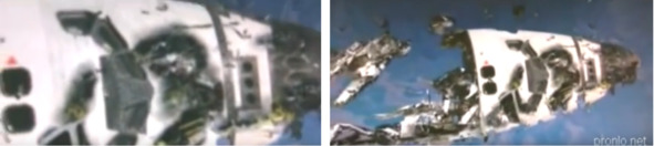 Этот «шуточный» ролик тоже родом из США. Ниже расположены кадры из этого фильма: Обломки Шаттла на орбите.