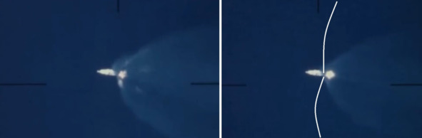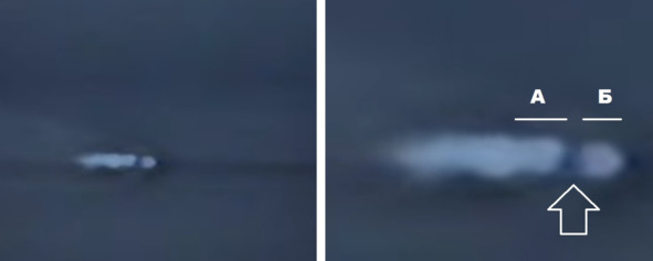 Работа двигателя головной части в этих кадрах видна. Аномального расширения факела и образование огромной «медузы» на небе не видно. Такие явления характерны для полета ракеты на высоте 60—80 километров.