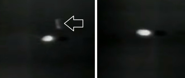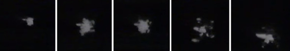 Далее происходит серия вспышек в области второй ступени, первая ступень наблюдается на фоне этих вспышек. Время наблюдения этого необычного явления длиться тоже, более 2 секунд.
