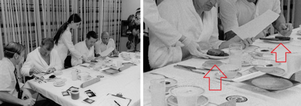Фотография НАСА: «skylab-KSC-73P-341. Завтрак экипажа, день запуска, утро. 25 мая 1973 года». [16]