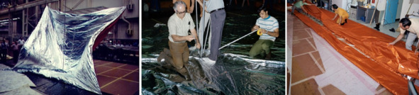 На следующих кадрах НАСА из фильма НАСА продемонстрировано, что серебристая поверхность обращена к поверхности «станции». При этом показано любопытное явление проявления «солнечного ветра», который отогнул часть навеса и заставил его колыхаться.