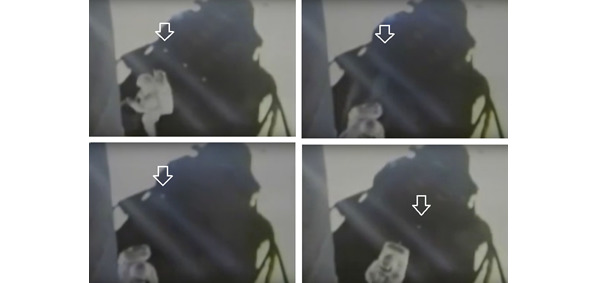 Три светлых точки, это, скорее всего, отражение в стекле искусственных источников света. Потом они исчезают, и снова появляются единичные блики от включенных источников света внутри киностудии, размещенной в макете «ЛМ».