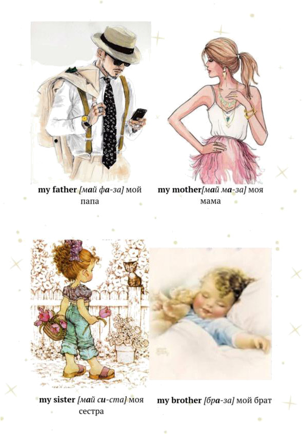 Моя (My) [май] бабушка (granny) [грэни] и (and) [энд] я (I) [ай] не ездим (go) [гоу] на (to) [ту] речку (the river) [з рива] несколько (several) [сэвэрал] раз (times) [таймз] в неделю (a week) [э уик].