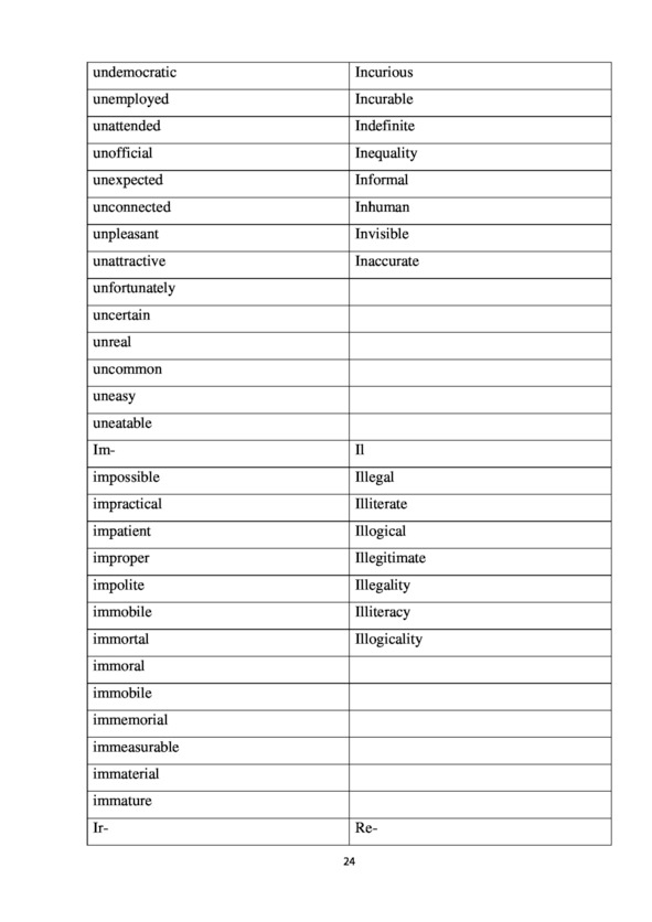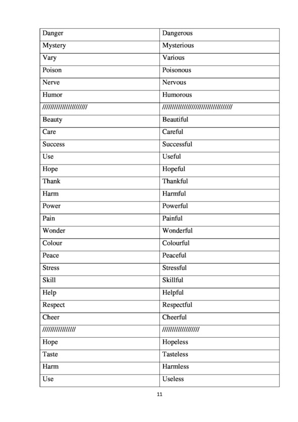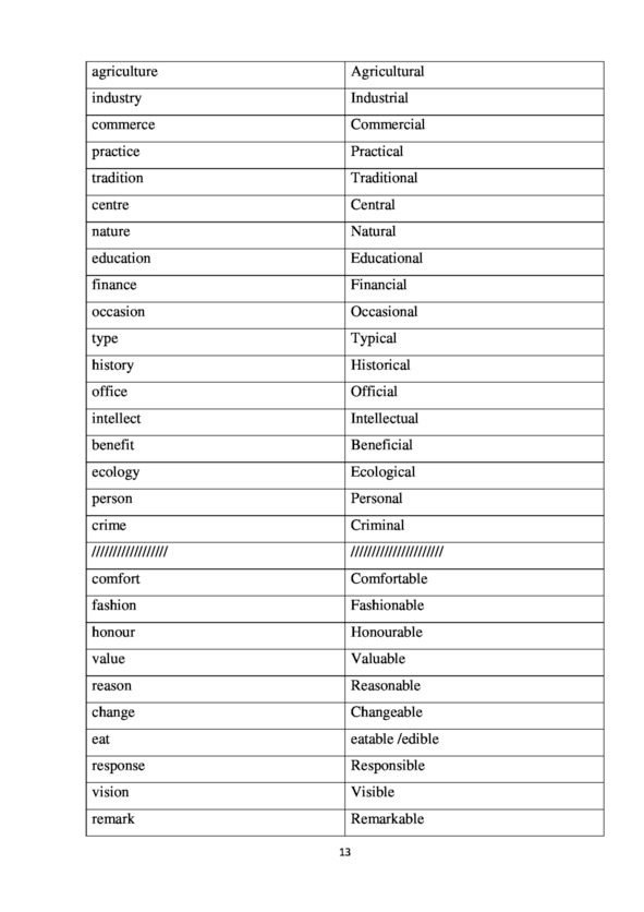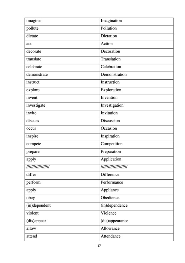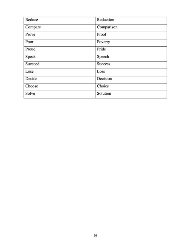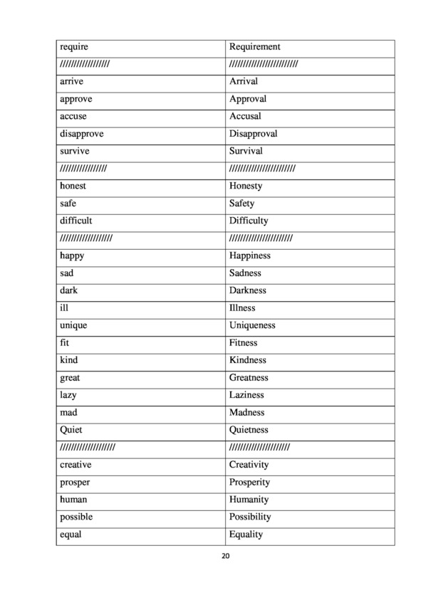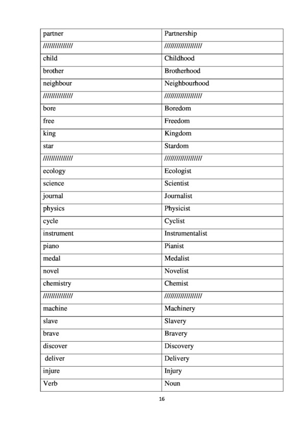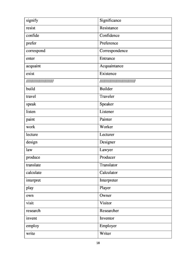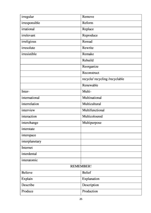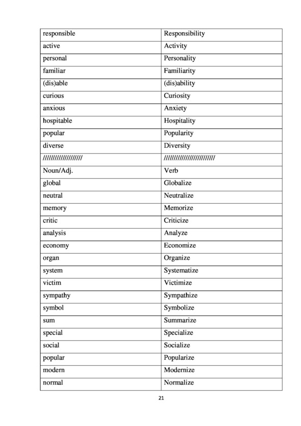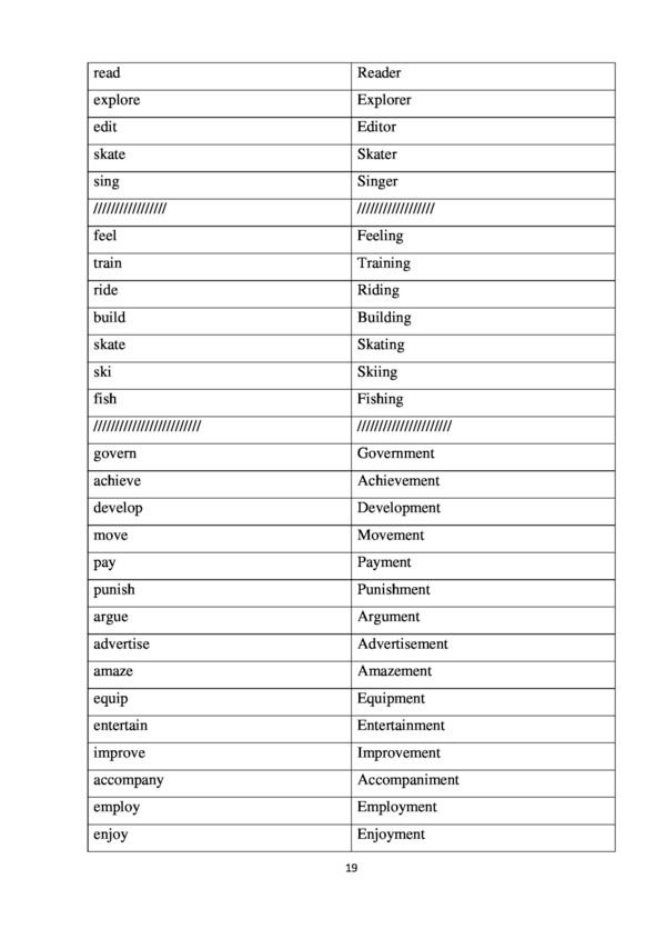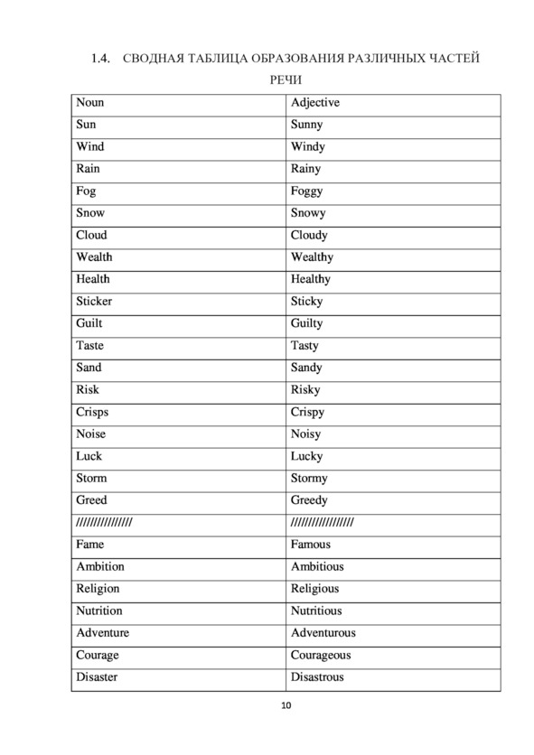 СВОДНАЯ ТАБЛИЦА ОБРАЗОВАНИЯ РАЗЛИЧНЫХ ЧАСТЕЙ РЕЧИ