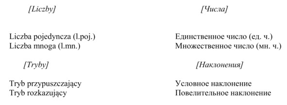 Ниже предоставлены польские грамматические термины и их сокращения (skr?t), используемые в книге.