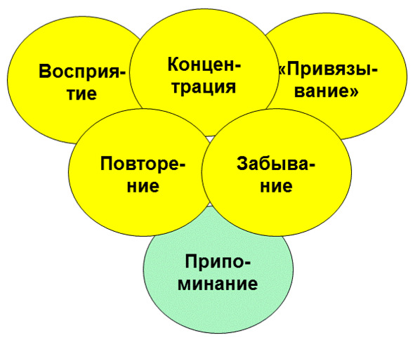 Рис.17. Процесс запоминания и его 6 подпроцессов.