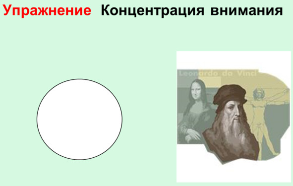 Потом даю пояснение – это нормально, если, когда вы долго смотрите на белый круг, ваши мысли уходят – так как процесс запоминания познавательный, а концентрация, как один из подпроцессов запоминания, если ничего нового не открывается, ослабевает.