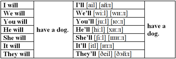 Имеют место такие же, как и в предыдущей Теме сокращения для глагола will: