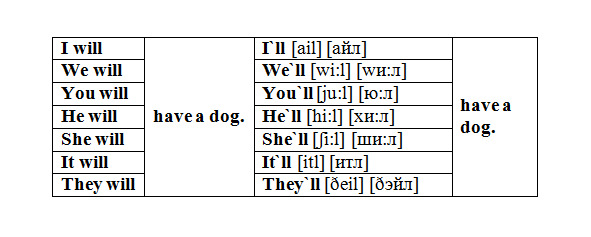 Имеют место такие же, как и в предыдущем уроке сокращения для глагола will: