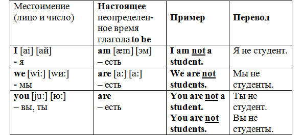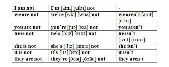 Отрицательные предложения с глаголом to be [tu: bi: ] [ту: би: ] (быть) образуются при помощи отрицательной частицы not [n?t] [нот] (не), которая ставится после разных форм глагола to be (am not, are not, is not, was not, were not, shall not be, will not be).