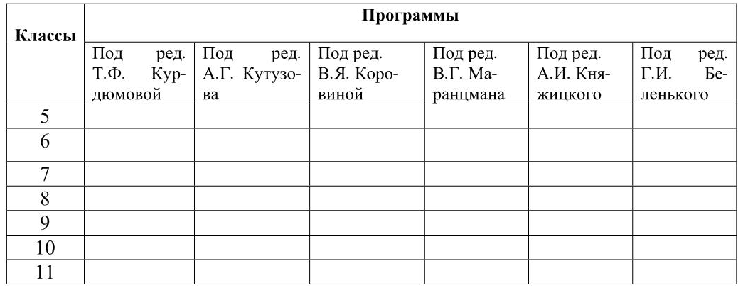 Таблица 1.1 – Формирование понятия «художественное пространство» в средней школе. Анализ вариативных школьных программ