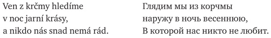 Также кажется достойной внимания перекличка с этой песней (Mne u? nem? ??dnej r?d…) в ранних меланхолических стихах самого Гашека о грустной доле не очень трезвого молодого человека с таким рефреном (SB 2016).
