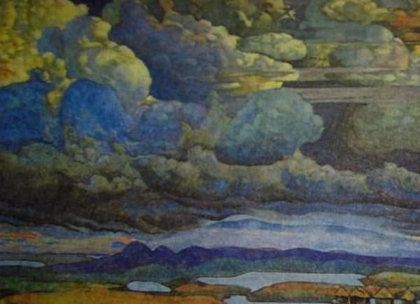 Эту землю Рериха, с волнистыми далями и острыми пиками, с морями, озерами и валунами под сказочно-облачным небом, напрасно стали бы мы искать на географической карте, хоть и напоминает она скандинавский север, откуда родом предки художника (в последнее время он настойчиво писал свою фамилию Роерик…) и напрасно стали бы прилагать обычную мерку к формам и краскам, что придают мифической державе Рериха странную и манящую и жуткую величавость. Можно «принимать» или «не принимать» его холодную ворожбу. Ни сравнивать, ни спорить нельзя.