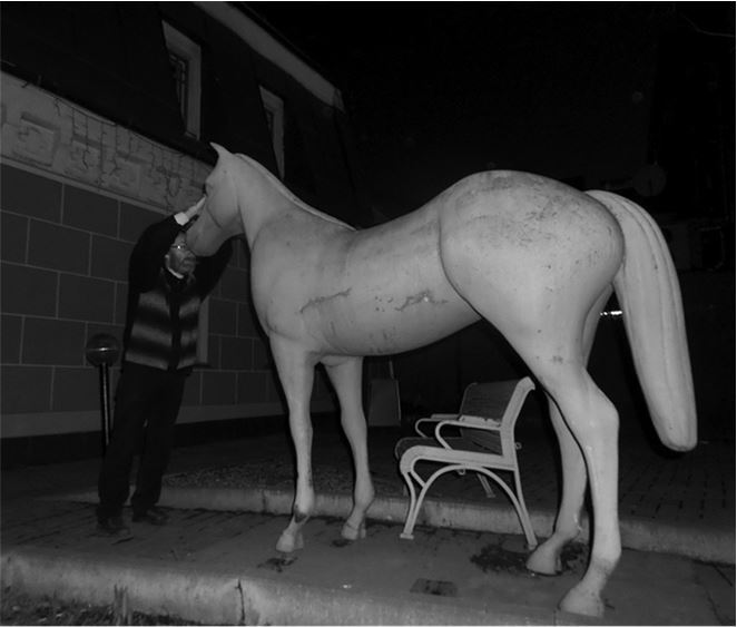 Не сказать, чтобы слишком повезло с кадром: композиция схематична, светотени убиты фотовспышкой. Но сюжет — загадочен, символика темна;