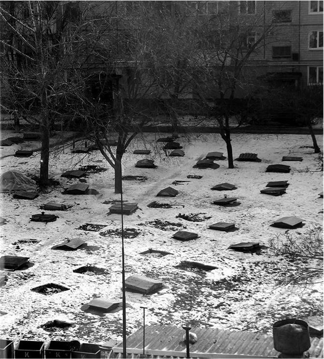 Земля во дворах, как и стены окружающих домов, испещрена окнами.