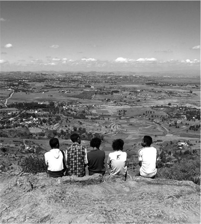 Повезло с кадром. Мы появились в резиденции мадагаскарских королей во время экскурсии для местной молодёжи. Юноши и девушки сидят на краю священного холма с панорамой на сельские пригороды столицы, слушают рассказ краеведа о таинственных истоках своей державы.