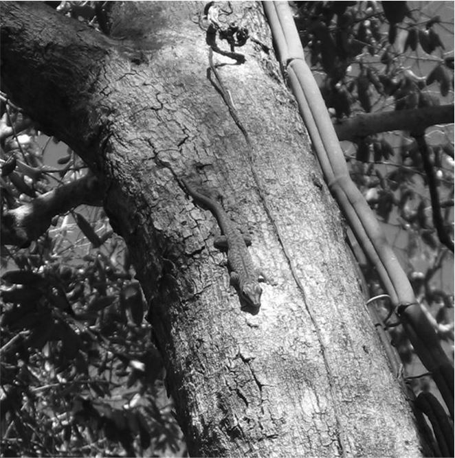 В одном временном масштабе лиана взлетает по стволу, как ящерица, в другом — рептилия застывает неподвижной частью пейзажа…