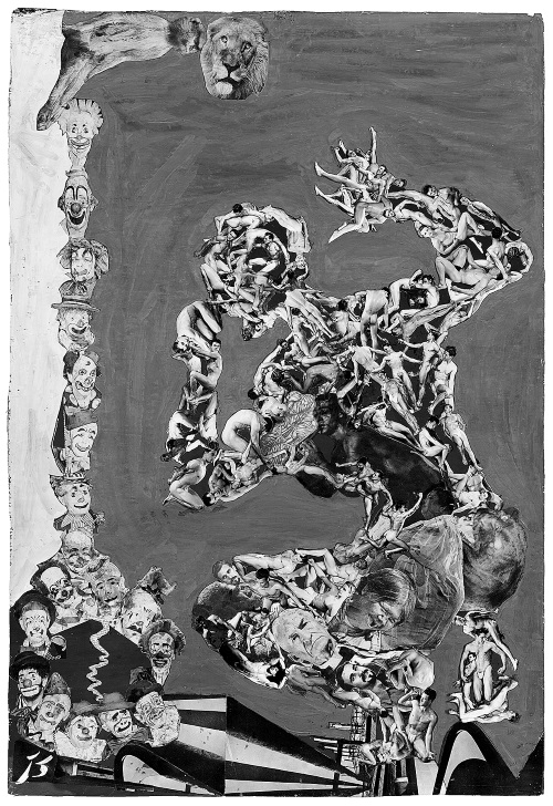 Живописцы и скульпторы, формировавшиеся в Калифорнии, прошли через ту же маргинализацию [1], что и Джонс и Раушенберг в Нью-Йорке, только в их распоряжении не было устойчивой инфраструктуры галерей, меценатов и зрителей, которая могла бы дать реальную надежду на успех в обществе. Их узкая публика чаще всего, особенно в Сан-Франциско, пересекалась с кругом любителей экспериментальной поэзии, и в обоих случаях большинство составляли сами художники и поэты. Пара, которую составили поэт Роберт Данкан (1919–1988) и художник Джесс (род. 1923 [умер в 2004. – Пер.]), ярко свидетельствует об этом взаимодействии двух искусств с начала пятидесятых. Данкан заявил о себе в 1944 году, опубликовав в нью-йоркском журнале Politics статью «Гомосексуалист в обществе» [2], в которой доказывал, что открытая гомосексуальность стала возможной благодаря гей-писателям и их искусству <…>. Джесс в начале пятидесятых годов обратился к табуированным дотоле темам [3], создавая коллажи из фрагментов местной повседневной прессы. На одном из первых его коллажей, «Мышиная сказка» (1951–1954) (ил. 6), большая обнаженная фигура в манере Сальвадора Дали составлена из десятков миниатюрных мужских фигурок и лиц [3].