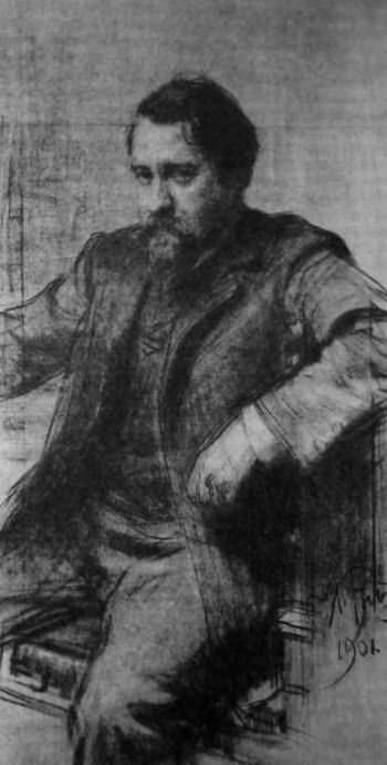 У всякого художника — свои глаза, своя зоркость. Зоркость Репина-портретиста в том, что он умеет подметить сразу, по первому же взгляду на человека, характерные, ему одному свойственные, неотъемлемые черты его телесной физиономии, его физической личности, черты, в которых так много животно-уродливого, говорящие об инстинктах, привычках, наследственных пороках, влияниях общественной среды. Но он не видит дальше, не видит духовного, нравственного человека, не видит, что в тех же чертах отражается жизнь более скрытая и глубокая, чем наша душевно-телесная жизнь: тайные глубины страсти, вдохновения, совести, поэзия мысли, мистика чувств. Несколькими обдуманно-небрежными штрихами он определяет линию лба, изгиб носа, движение плеч, взгляд, бессознательную усмешку, морщину, подробность, мелочь — и перед нами весь человек, человек во всем своем типическом несовершенстве, но не тот человек, который созерцает, мыслит, верит, овеянный сумраком своего «я», а тот, который ест, спит, двигается, болеет и наслаждается, — животный двойник человека, призванный к самостоятельному бытию волей беспощадного наблюдения.