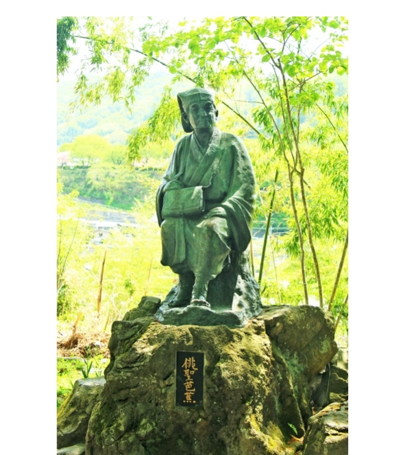 Памятник Мацуо Басё возле храма Риссякудзи в префектуре Ямагата