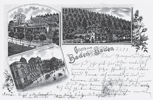 … как с немецких вод перламутровый Gruss … – В английском переводе поясняется, что речь идет не о сувенире, а об открытке со стандартной розоватой надписью «Привет (нем. Gruss) из …» (Nabokov 1991b: 15). См., например, открытку «Привет из Баден-Бадена».