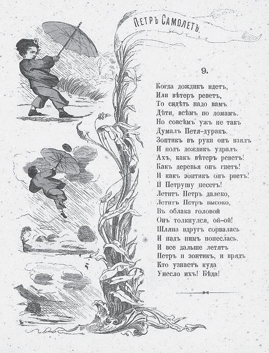 Петербургских продавцов воздушных шаров вспоминал и знакомый Набокова по Берлину Сергей Горный (Александр Авдеевич Оцуп, 1882–1948) в книге очерков «Санкт-Петербург (Видения)» (1925), где упомянута также иллюстрация к популярной детской книжке «Степка-растрепка»: «… сине-бело-красная гроздь, похожая на сказочный, небывалый виноград, уносила Степку наискосок к небу» (Горный 2000: 67). По всей вероятности, Горный ошибся, так как в известных нам версиях «Степки-растрепки» герой (его на самом деле зовут Петр) улетает не на воздушных шарах, а на зонтике.