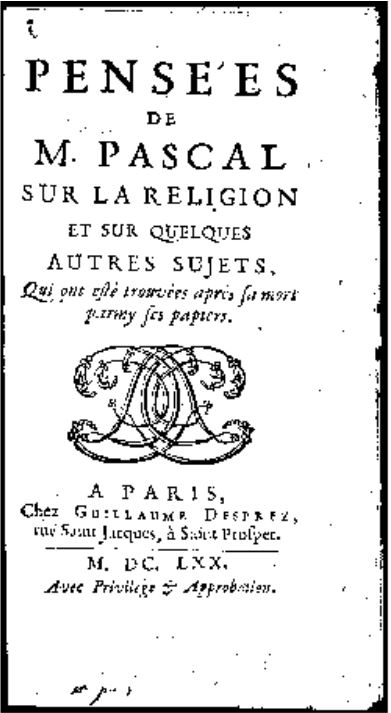 Обложка первого издания «мыслей» Паскаля. 1670 год