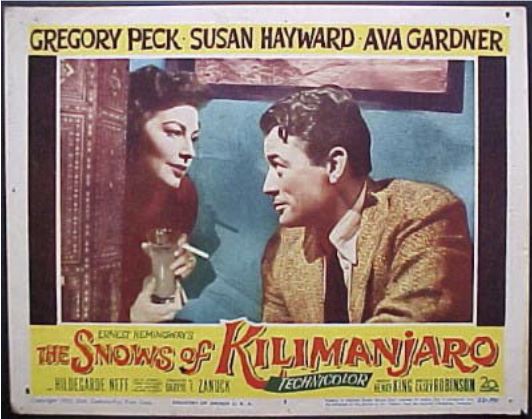 Афиша знаменитого голливудского фильма «Снега Килиманджаро» по рассказу Э.Хемингуэя