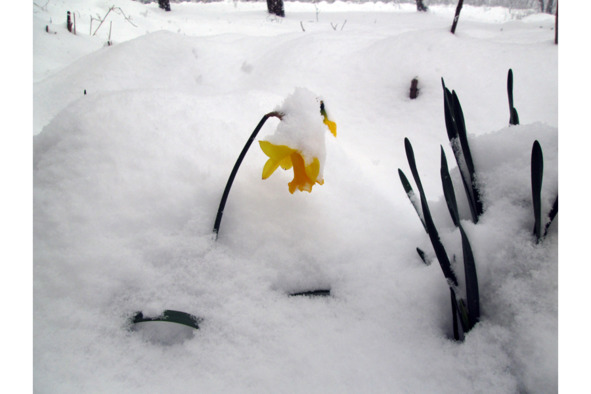 Первый снег и цветы – тема хайку Басё о нарциссе, надломившемся под тяжестью первого снега: