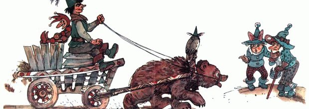 По дороге из желтого кирпича, среди снега, укрывшего некогда зеленые леса и луга, окутанная клочьями тумана, шагает великанша в синем плаще, с ковром-самолетом под мышкой, и дико хохочет от восторга...