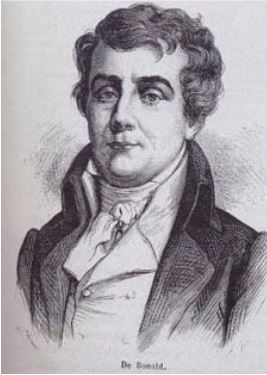 Вторым влиятельным ученым стоит считать виконта Луи де Бональда (1754-1840). Современники называли его «человеком готической башни и древней колокольни». Де Бональд – последовательный реакционный идеолог реставрации, верный придворный Бурбонов. Состоя членом Платы депутатов, он требовал введения строжайшей цензуры, отмены железных дорог и телеграфа как дьявольских изобретений, доходя в своих речах и писаниях до полного фанатизма.