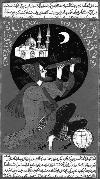 Астроном. Иллюстрация на странице из старинной арабской книги