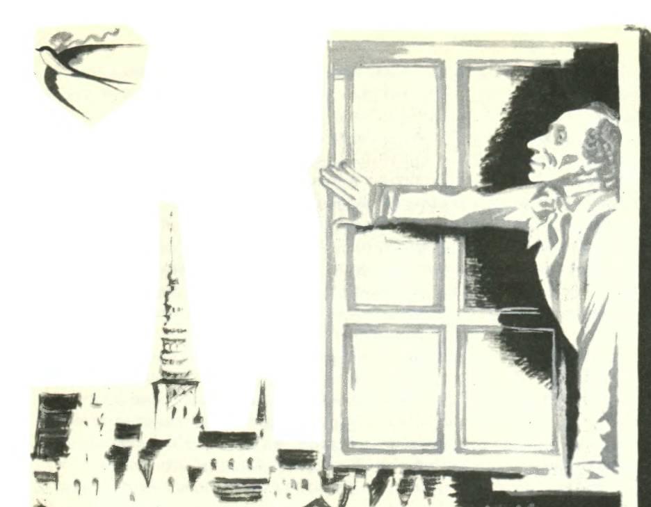 Андерсен шел по старому спящему Копенгагену, от дома к дому, из переулка в переулок. Очень, очень не спеша и неслышно. Остановился он и у дома господина в богатой шубе, своего давнего обидчика — ведь там тоже жили дети... Двери были заперты на десять засовов, окна закрыты ставнями.