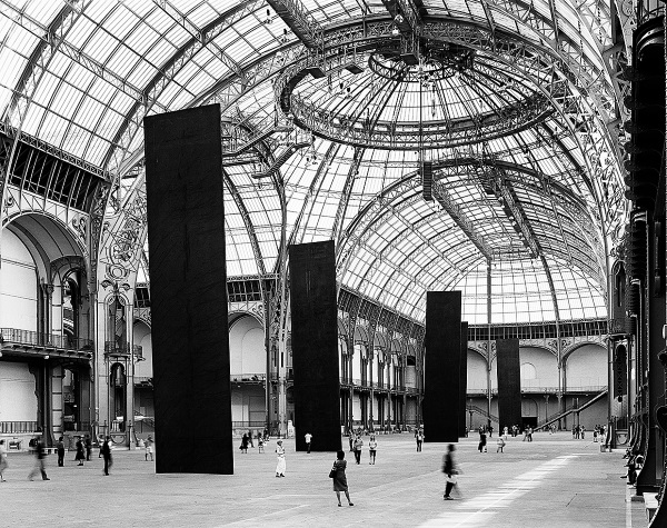 Ричард Серра – один из самых значительных скульпторов современности, обладающий достаточным реноме, чтобы музеи и коммерческие галереи учитывали при планировке выставочных площадей возможность появления в них его гигантских стальных плит [1]. Может показаться, что эти монументальные произведения Серры далеки от его работ начала 1960-х годов с разбросанным свинцом [1], и все же очевидно, что весь путь скульптора связан с новаторским исследованием свойств и поэтики промышленного металла [Т], в частности его физической и визуальной массы и способности занимать пространство [2]. Недавние проекты Серры – например, «Прогулка» (2008) (ил. 22), ряд 17-метровых плит, установленных вертикально в парижском Гран-Пале, – свидетельствуют о том, что скульптор идет в своих работах все дальше. Массивность сочетается здесь с тонко рассчитанной нерегулярностью расположения, что при подобных масштабах оказывает мощное воздействие на зрителя [3].
