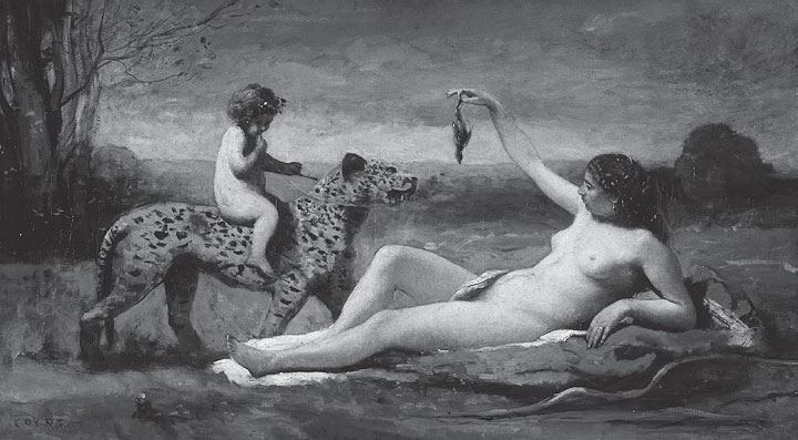 … тетя Ксения, та писала стихи только по-французски <… > ее излияния были очень популярны в петербургском свете, особенно поэма «La femme et la panth?re»… – Название и тема поэмы «Женщина и пантера» ведут свое происхождение от французского изобразительного искусства второй половины XIX – начала ХХ века и, подобно многим живописным работам на этот сюжет, имеют отчетливые эротические коннотации. См., например, картину Камиля Коро (Jean-Baptiste-Camille Corot, 1796–1875) «La Bacchante ? la Panth?re» («Вакханка с пантерой», 1860) или «Нимфу и пантеру» («Nymphe et panth?re», 1895) художника-символиста Пьера-Эмиля Корнийе (Pierre-?mile Cornillier, 1862–1948).