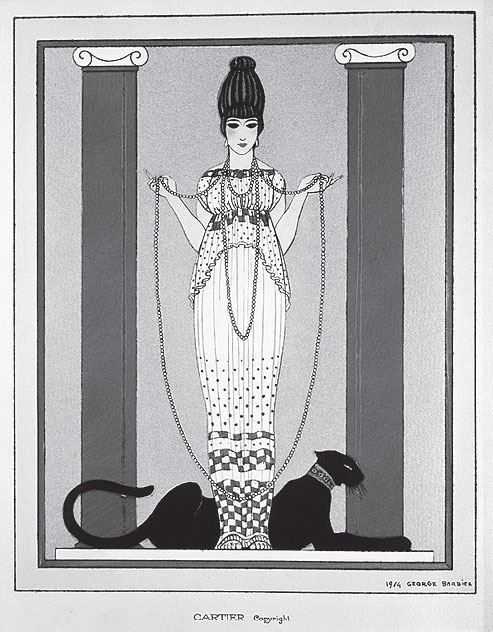 Особую популярность сюжет приобрел в графике и скульптуре ар-деко. Из многочисленных примеров приведем лишь рекламный плакат ювелирной фирмы «Картье» (1914) работы графика Жоржа Барбье (George Barbier, 1882–1932).