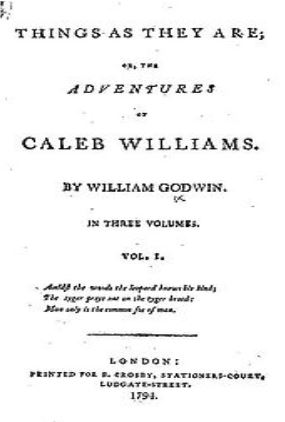 В 1794 году выходит роман «Калеб Уильямс». Основой сюжета книги служит убийство неким лордом Фолькландом одной девушки. Чтобы отвести от себя подозрения, скрыть следы преступления, лорд подводит под виселицу ни в чем не повинных людей. Слуга лорда, Калеб, всюду и везде видящий насилие и несправедливость, знает о преступлении и собирается донести на хозяина, однако тот добивается его ареста. Устами Калеба Годвин произносит пламенные обличительные речи против государственного устройства Англии.