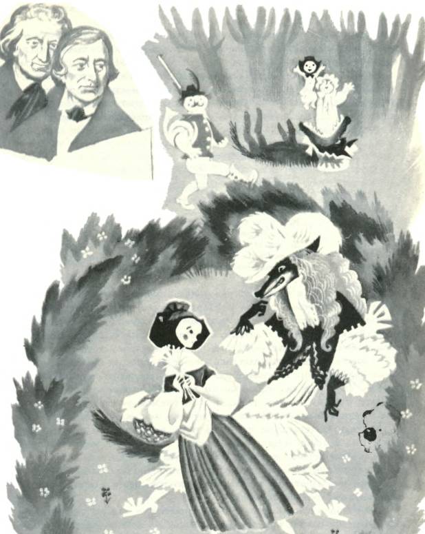 И вот прошло немногим больше столетия, а это по сказочному счету времени совсем малый срок, и немецкие фольклористы братья Якоб и Вильгельм Гримм среди множества других бытующих в народе сказок записывают и «Красную Шапочку». Какой же предстает она во второй раз, возникнув на печатных страницах?