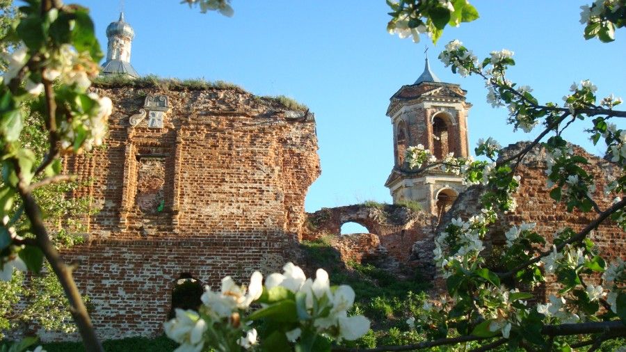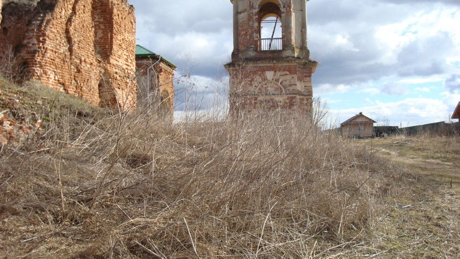 По благословению о. Илия и на его средства м. Ксения пыталась создать монашескую общину, а в будущем и возродить монастырь на этом месте. Но уже много лет у нее это не получалось — никто здесь не мог удержаться. По словам батюшки Афанасия, место это было пустынное и уединенное. Я поняла, что это именно то, что нужно: пустыня, как я люблю, деревня, уединение. Я созвонилась с м. Ксенией и поехала в Ильинское. Место и правда было настолько пустынным, что туда не было проложено даже нормальной дороги. Просто нужно было ехать через поле и бурьян. Во время дождя проехать по этой грязи не было никакой возможности. Такой запущенности я тоже еще нигде не видела. Сухой многолетний бурьян рос повсюду, почти закрывая собой первый этаж храма, подходя к самым стенам, кругом валялся строительный мусор, бутылки, камни, доски. Храм, когда-то оштукатуренный, теперь стоял весь обсыпавшийся, в дырах и трещинах, как скелет, с протекающей крышей и осыпающимися стенами. На колокольне не было ни крыши, ни колоколов, только трава и мелкие деревца, произрастающие из всех трех ярусов.