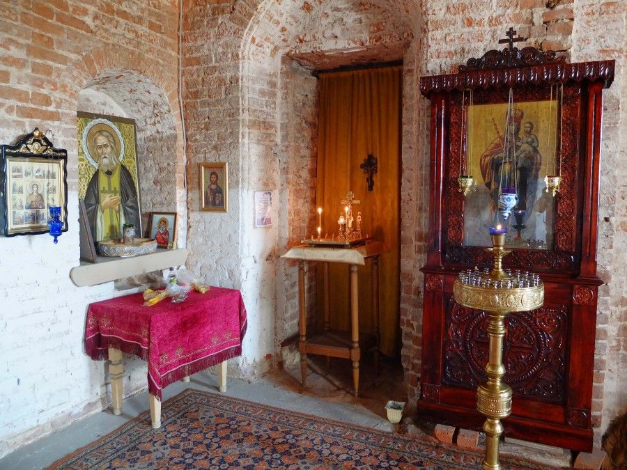 Заселились мы в этот маленький сруб с печкой и начали подвизаться. Вначале все было очень хорошо, я даже думала, что нашла наконец место, где смогу спокойно жить в молитве и трудах. Жили мы просто, почти как древние подвижники: утром я с 6.30 топила печку в храме, где мы с 8.00 читали утреннее правило: полунощницу, утреню и часы с изобразительными. Потом мы готовили трапезу, кушали, слушая душеполезные чтения святых отцов, убирались и шли на свои послушания. Пантелеимона была келарем и поваром, а я занималась храмом и территорией: разгребала потихоньку завалы, косила тримером засохший бурьян, носила дрова и уголь. Надя вышивала бисером или делала что-то по хозяйству, а м. Ксения занималась с внуком уроками или ездила по делам. Вечером мы читали в храме вечерню, повечерие и акафист. Иногда по праздникам мы ездили в Оптину или в Шамордино.