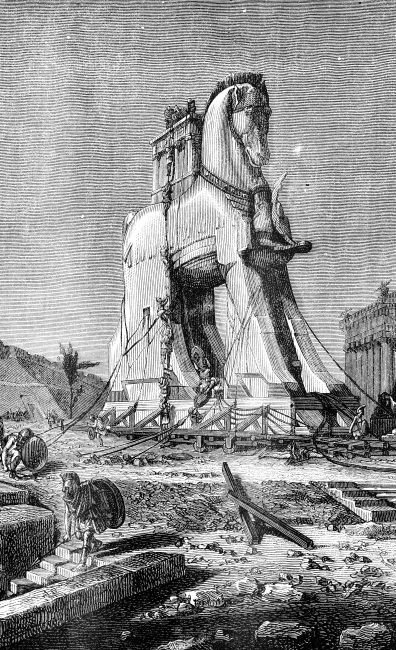 Салон 1874, живопись. Троянский конь, Мотт, старинная гравюра. Magasin Pittoresque 1875