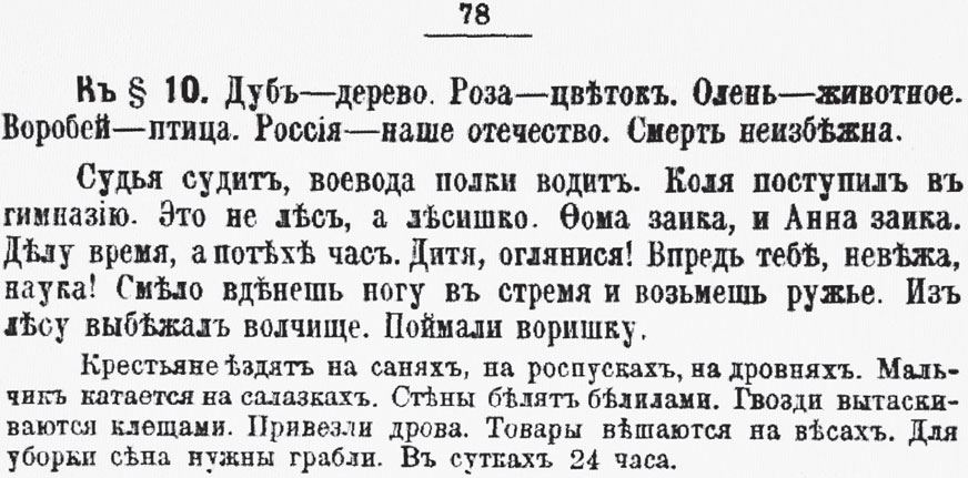 Дуб – дерево. <… > Смерть неизбежна. – Эпиграф точно воспроизводит текст упражнения для разбора из гимназического «Учебника русской грамматики» (см., например: 17-е изд. М., 1903. С. 78) Петра Владимировича Смирновского (1846–1904).