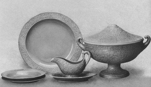 Сервиз столовый: тарелки, блюдо, соусник, чаша суповая. Фаянс. 1830-е гг.