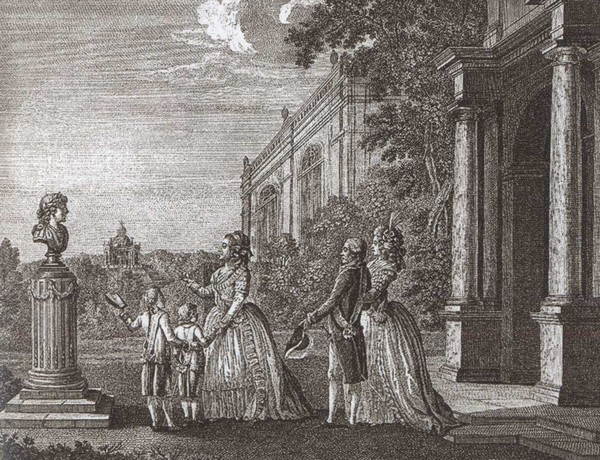 Екатерина II с семьей у памятника Петру I. Гравюра Ф. Сидо. 1780-е гг.