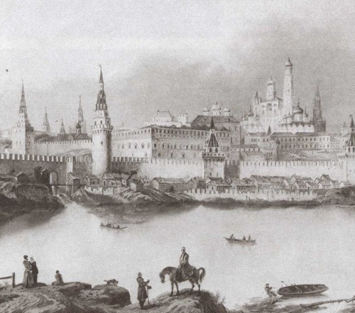 Вид Московского Кремля. Литография Л. П. А. Бишебуа. Первая четверть XIX в.