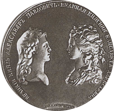 Медаль в честь бракосочетания великого князя Александра Павловича и великой княгини Елизаветы Алексеевны. 1793 г.